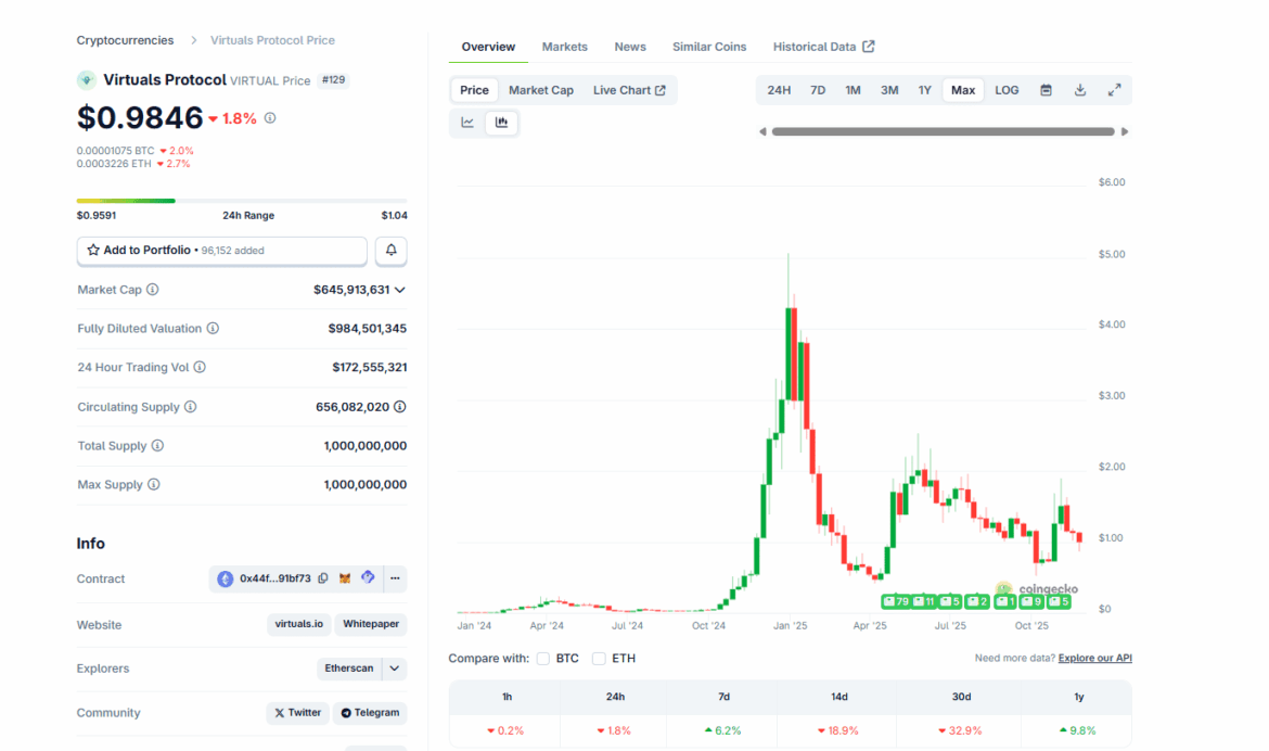 • Virtuals Protocol ecosystem valued at over $1Bn