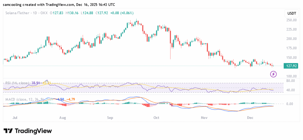 At press time on Tuesday, SOL was trading near the key $126 support area after three consecutive red days, with a roughly 1% daily loss and derivatives metrics indicating growing bearishness. The episode hits as broader crypto cools from highs, liquidity thins, and risk assets digest recent macro shifts and ETF-driven flows.