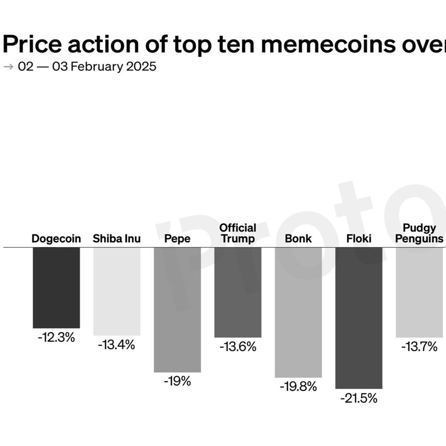 Nine of the 10 largest memecoins by market cap have taken double-digit hits following Donald Trump’s tariffs on Canada, Mexico, and China.
