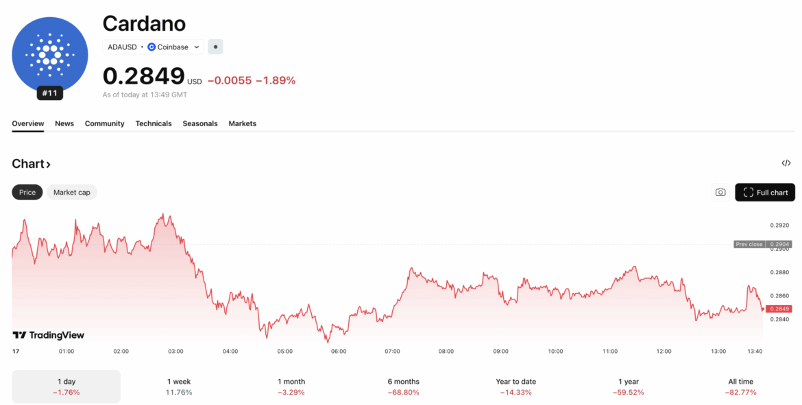 Cardano’s recent price action offers a classic recovery setup for patient investors. After consolidating between $0.2493 and $0.2767 for much of early March, ADA broke out above local resistance, hitting $0.2906 as of March 17, 2026. This represents a solid +10.65% gain over the last week.